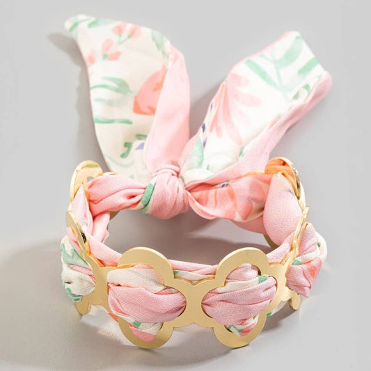 Metallic Clover And Bandana Cuff Bracelet