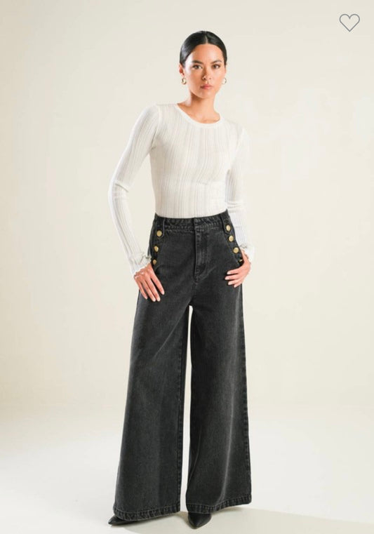 Free Market Wide Leg Jeans with Gold Accent Buttons