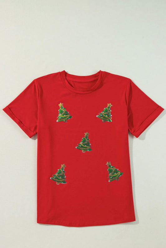 Sold outRed Sequined Christmas Tree Tee
