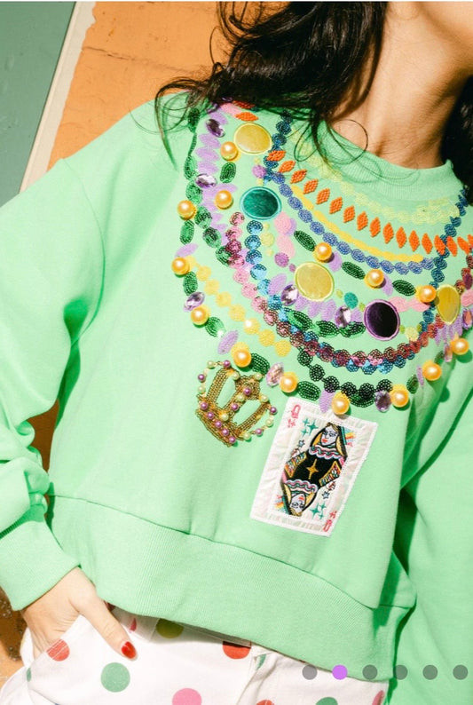 Queen of Sparkles Bright Green Queen Mardi Gras Beads Sweatshirt