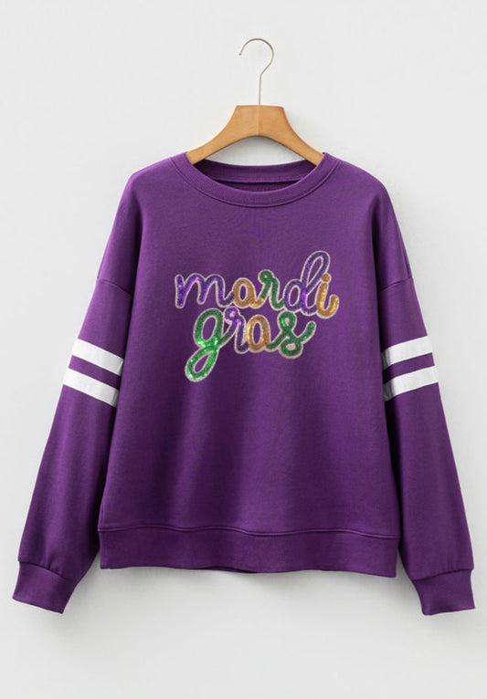 Purple Sequin Mardi Gras Oversized Varsity Swearshirt