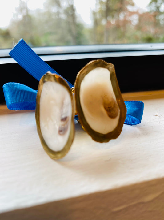 Hand selected oyster shells are gilded and glossed to bring out their natural beauty. These are used in various ways to wear or display in your home.