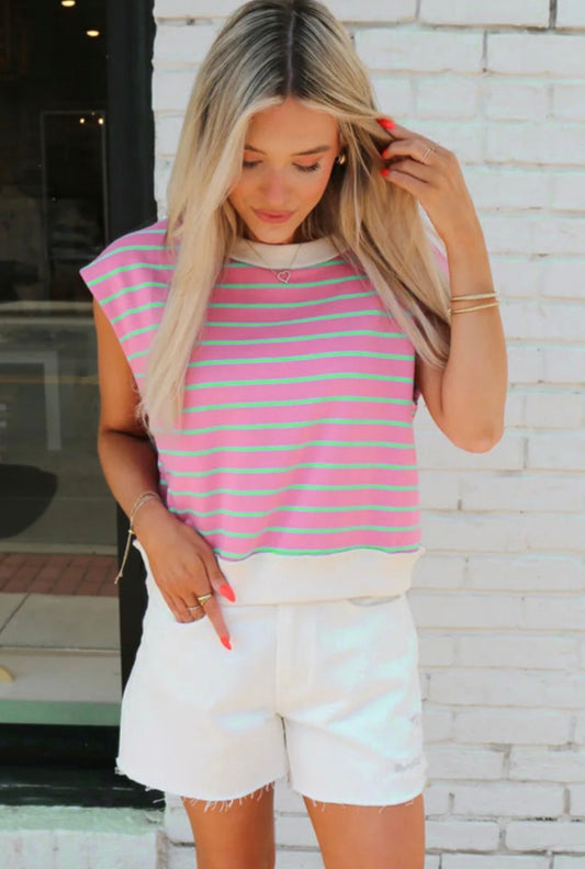 Sold outPink Striped Cap Sleeve Top