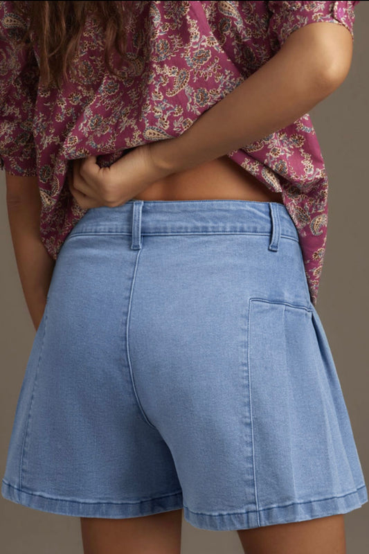 Denim Pleated Flare Shorts