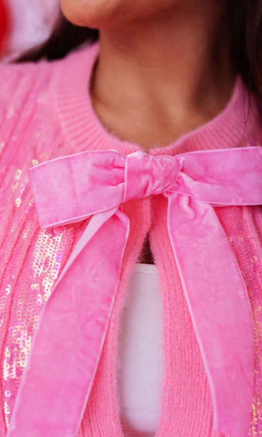 Brianna Cannon Pink Cable Knit Cardigan with Bows
