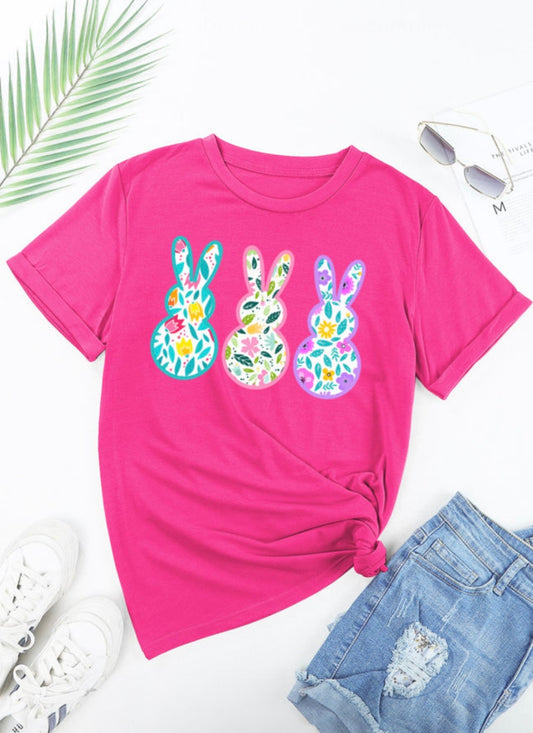 Pink Graphic Floral Bunny Tee