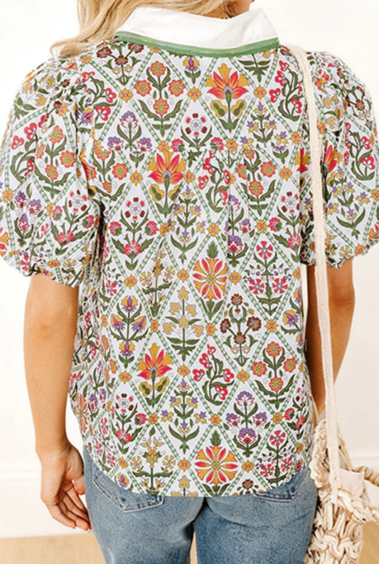 Cream Floral Puff Sleeve Top